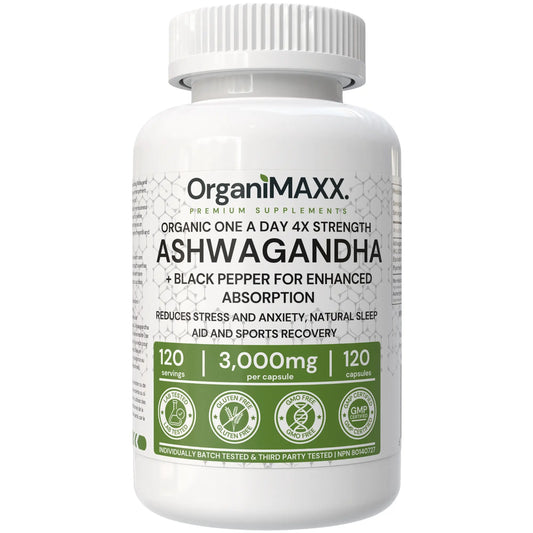 OrganiMAXX Ashwagandha 6X Strength 3,000 MG Capsules